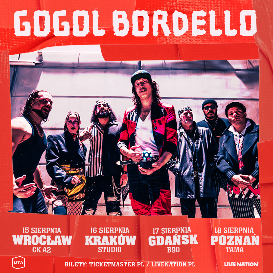 Od prawie trzydziestu lat tworzą brawurową estetykę, którą bezwstydnie ochrzcili gypsy punkiem. Nagrywali m.in. z Rickiem Rubinem i Stevem Albinim. Jeździli w trasy z System of a Down, Primus, Rancid i Dropkick Murphys, a ich sceniczna energia mogłaby zasilić całe miasta. Gogol Bordello wrócili właśnie z albumem We Mean It, Man!, a już w sierpniu ponownie zagoszczą w kraju nad Wisłą.