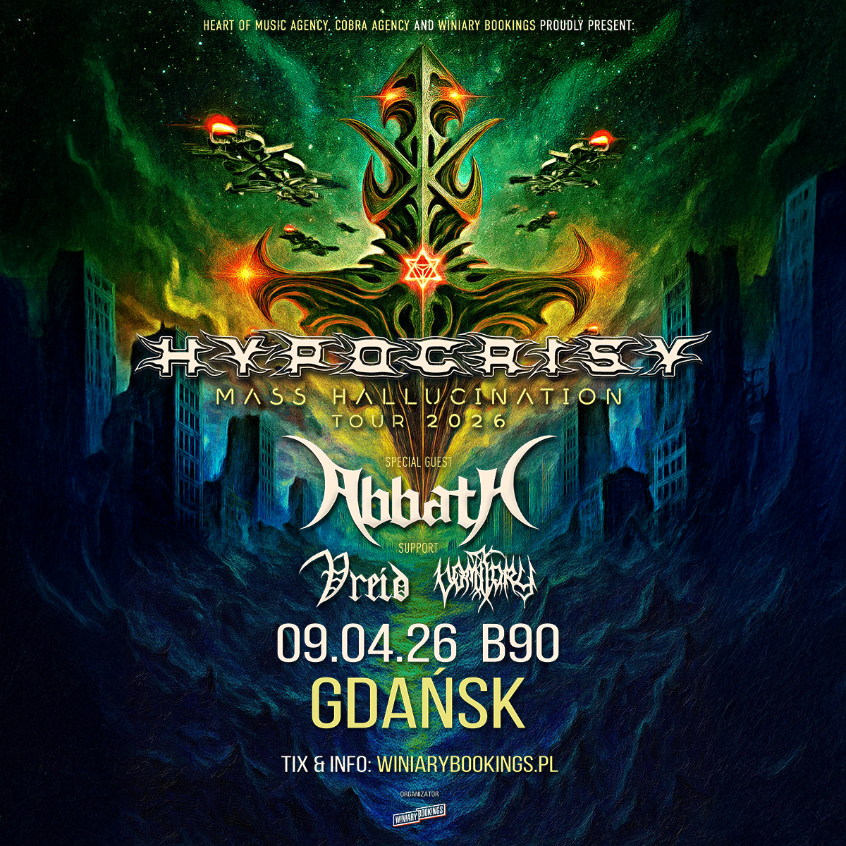 Cztery potęgi metalu z Północy na jednej scenie! Dwie legendy szwedzkiego death metalu – nieśmiertelne Hypocrisy i brutalne Vomitory, norweski władca mroku Abbath oraz melodyjny, blackmetalowy Vreid 9 kwietnia zagrają razem w gdańskim klubie B90!